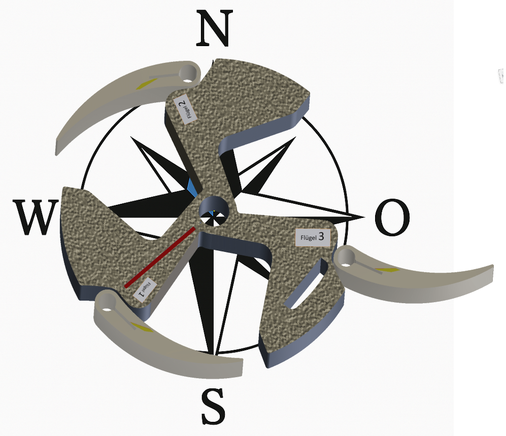 Bei einer Windkraftanlage mit vertikaler Achse, wie der Influx‑VA, verändert sich die Windrichtung aus Sicht eines einzelnen Rotorblatts ständig im Verlauf einer Umdrehung. Diese wechselnden Strömungsverhältnisse stellen hohe Anforderungen an die Steuerung und Auslegung der Flügel.